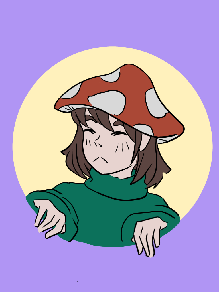 Here's a character who's a personification of Tikurella (or simply Tiki), my persona. She's a mushroom girlie (pol. grzyboludź) always making a grumpy face. To find out more about me go to my fig tree.